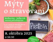 Milé čitateľky, milí čitatelia, pozývame vás na druhú prednášku zo vzdelávacieho cyklu Mýty o stravovaní. V stredu 8. októbra 2025 o 16:30 sa v pobočke Terasa (Tr. SNP 48/A) budeme venovať téme Bielkoviny - koľko ich naozaj potrebujeme. Počas prednášky sa dozvieme čo je potrava a aké sú jej zložky. [...]