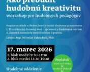 Hudobné myslenie, improvizácia a tvorivosť v praxi Ako vnímať hudbu nielen ako notový zápis, ale ako živý jazyk plný emócií, nápadov a osobného výrazu? Workshop muzikológa, hudobného pedagóga a gitaristu Mgr. Miroslava Zahradníka, PhD. ponúkne účastníkom inšpiratívny pohľad na hudobnú tvorivosť a jej rozvoj v praxi. Prostredníctvom praktických [...]