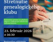 Milé čitateľky, milí čitatelia, po úspešnom genealogickom kurze v roku 2025 vzniká v knižnici genealogický klub, ktorého cieľom je pokračovať v systematickom objavovaní rodinnej histórie, zdieľaní skúseností a vzájomnej podpore pri pátraní po predkoch. Srdečne pozývame všetkých záujemcov o genealógiu na prvé stretnutie, ktoré sa uskutoční v pondelok 23. [...]