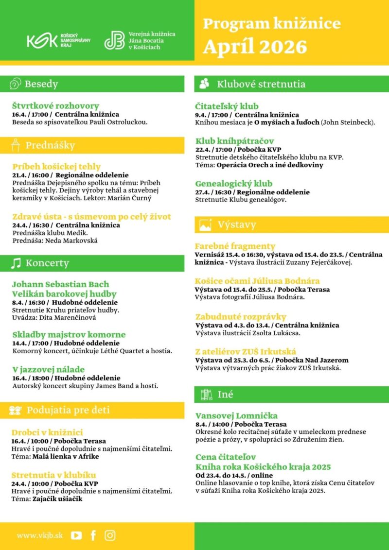 dávame do pozornosti prehľad programu na mesiac apríl 2026, veríme, že si vyberiete a navštívite nás.